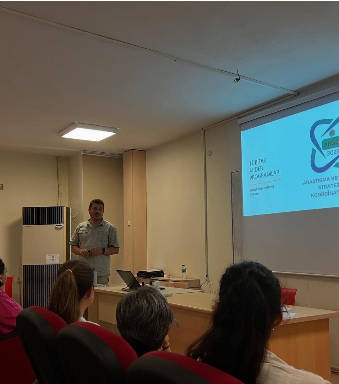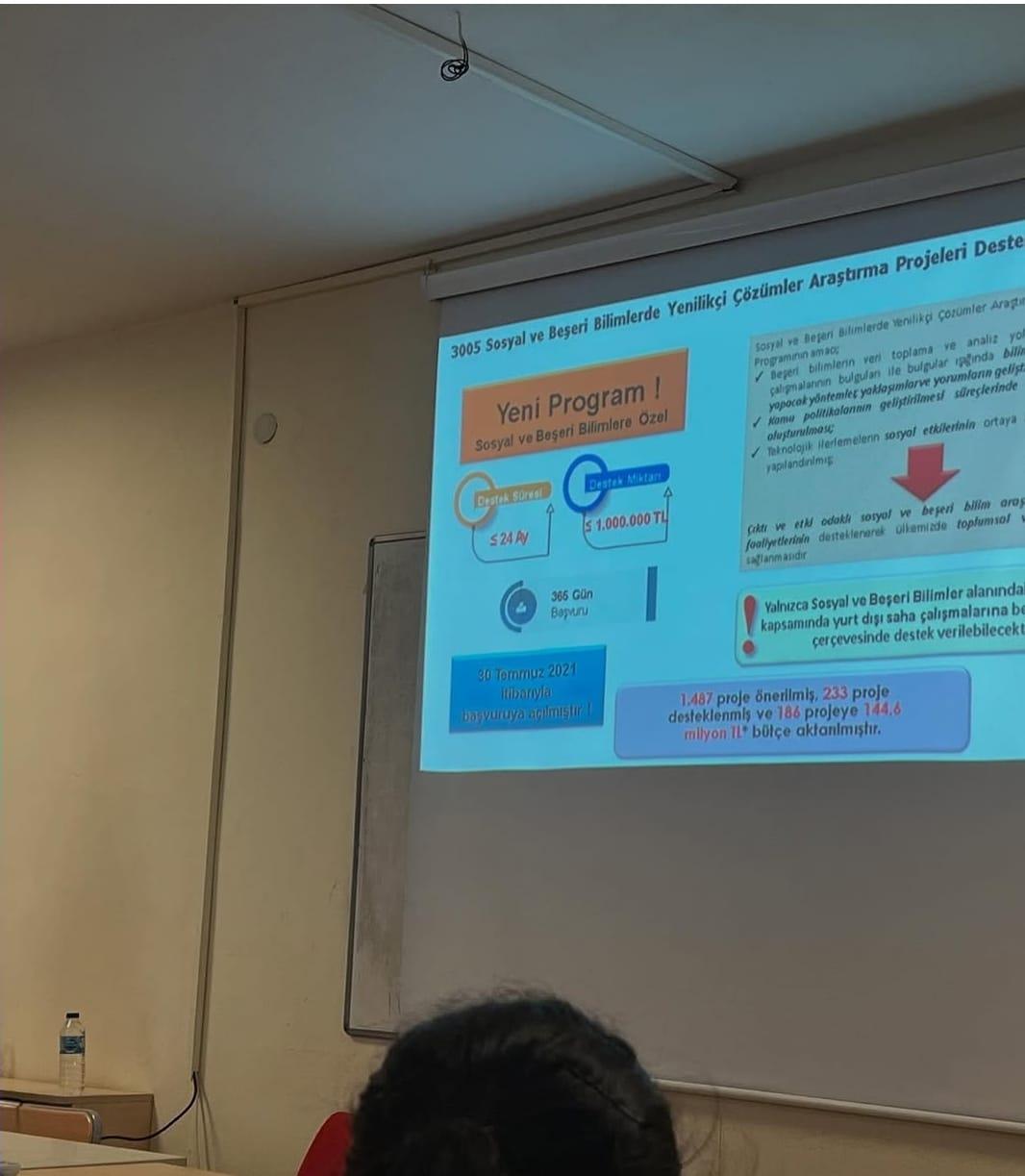 Seminerin konuşmacısı Öğr. Gör. Ali İhsan Yoğurt, sunumunda TÜBİTAK destek programlarının genel çerçevesini çizerek, sosyal bilimler alanında proje başvurusu yaparken dikkate alınması gereken özgünlük, yöntem ve etki boyutlarına ayrıntılı biçimde değindi. Ayrıca proje fikrinin olgunlaştırılması, uygun çağrıların belirlenmesi ve başvuru dosyasının yapılandırılması süreçleri örnekler üzerinden ele alındı.